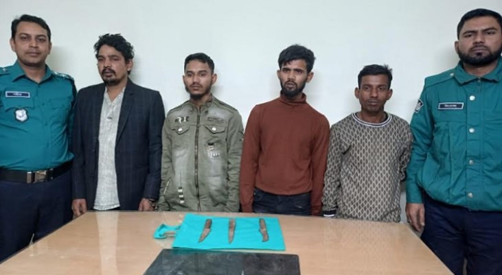 গ্রেপ্তাররা হলেন সুজন (৩৪) মোজাহিদ ওরফে রকি (২৮) মো. অনিক (২২) ও মো. বিল্লাল হাওলাদার (২৮)।