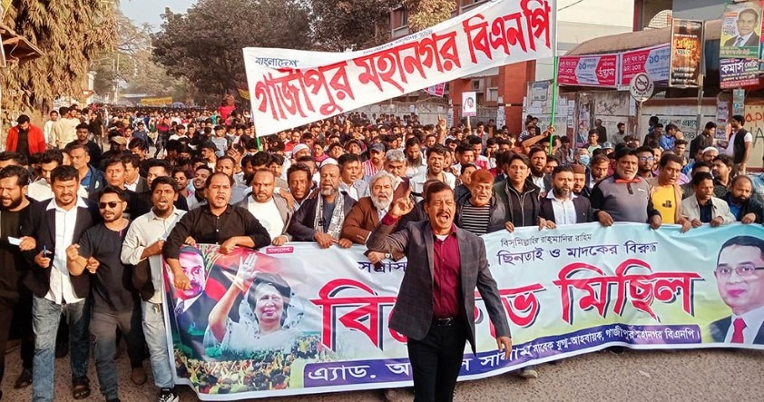 গাজীপুরে সন্ত্রাস, চাঁদাবাজির বিরুদ্ধে বিএনপির বিক্ষোভ মিছিল