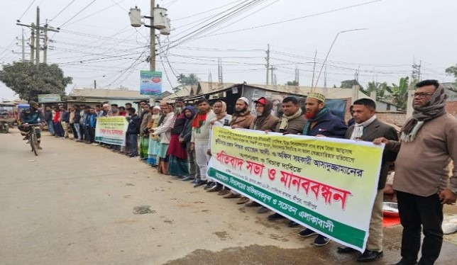 গাজীপুরের শ্রীপুরের গোসিঙ্গা উচ্চ বিদ্যালয়ের প্রধান শিক্ষক ওয়াজেদ আলী ও অফিস সহকারী আসাদুজ্জামানের অপসারণ দাবীতে প্রতিবাদ সভা ও মানববন্ধন করেছে স্থানীয়রা। বুধবার (৮ জানুয়ারি) বেলা ১১টায় গোসিঙ্গা বাজারে বিদ্যালয়ের অভিভাবক ও এলাকাবাসী সমন্বয়ে এ মানববন্ধন অনুষ্ঠিত হয়েছে।