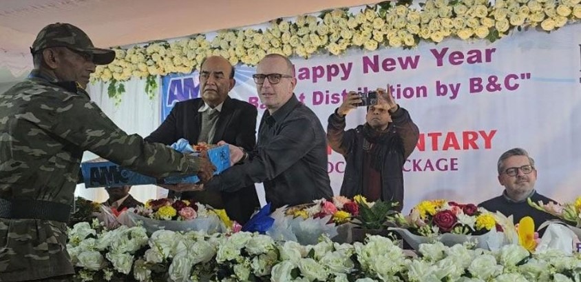 গাজীপুর প্রতিনিধি:: গাজীপুরে নিজেদের সাড়ে ৪ হাজার কর্মীর মধ্যে বিনামূল্যে নিত্যপ্রয়োজনীয় দ্রব্য বিতরণ ও ১৫শ’ নারী শ্রমিকদের জন্য রশোদ ফেয়ার প্রাইস শপ ও স্কয়ার টয়লেট্রিজের সহায়তায় হাইজিন প্রোগ্রামের আয়োজন করেছে এসপি গ্রুপ এবং দ্য কটন গ্রুপ। আজ বৃহস্পতিবার হ্যাপি নিউ ইয়ার ২০২৫ উপলক্ষে বাস্কেট ডিস্ট্রিবিউশন বাই’ বিএন্ড সি’ শিরোনামে এই প্রোগ্রামটি গাজীপুর জেলার সদর উপজেলার মেম্বার বাড়ি বানিয়াচালা এএমসি কারখানার হল রুমে অনুষ্ঠিত হয়। এএমসি নিট কম্পোজিট, এসপি গ্রুপের একটি সহযোগী প্রতিষ্ঠান এবং তাদের বায়ার দ্য কটন গ্রুপের সঙ্গে সম্মিলিতভাবে তাদের সাড়ে ৪ হাজার কর্মীকে বিনামূল্যে নিত্যপ্রয়োজনীয় দ্রব্য দিয়েছেন। নিত্যপ্রয়োজনীয় দ্রব্যের মধ্যে ছিল চাল, ডাল, সয়াবিন তেল এবং গমের আটা। তাছাড়া এএমসি কারখানার কর্মী ও তাদের ছেলে মেয়েদের বিনামূল্যে দেশ বিদেশে শিক্ষার ব্যবস্থা করার প্রতিশ্রুতি দেন।