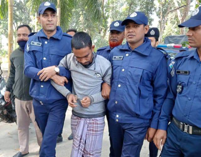 আল আমিন, নাটোর প্রতিনিধি:- নাটোর কেন্দ্রীয় মহাশ্মশান থেকে তরুণ দাস (৬০) নামে এক ব্যক্তির মরদেহ উদ্ধারের ঘটনায় হত্যা মামলায় জড়িত মূল পরিকল্পনাকারী মো. সবুজ হোসেনকে (২৪) চট্টগ্রাম থেকে গ্রেফতার করেছে পুলিশ। গতকাল বৃহস্পতিবার চট্টগ্রাম থেকে তাকে গ্রেফতার করেছে পুলিশ। জড়িত গ্রেফতার আসামি মো. সবুজ হোসেন (২৪) নাটোর শহরের বড়হরিশপুর এলাকার মো. রমজান আলির ছেলে। আজ শুক্রবার বেলা ১১টায় নাটোর বড়হরিশপুর মহাশ্মশান প্রাঙ্গণে এক সংবাদ সম্মেলনে এসব তথ্য জানান পুলিশ সুপার মারুফাত হুসাইন। অপরদিকে, তরুণ দাস (৬০) নাটোর শহরের আলাইপুর এলাকার মৃত কালিপদ দাসের ছেলে। তিনি দীর্ঘ ২৫ বছর ধরে ওই শ্মশানে রাত্রীযাপন করতেন। পুলিশ সুপার মারুফাত হুসাইন বলেন, সবুজসহ অন্যান্য আসামি নাটোর কেন্দ্রীয় মহাশ্মাশানে চুরি করতে এলে তরুণ দাস দেখে ফেলায় তাকে হাত-পা ও মুখ বেঁধে শ্বাসরোধ করে হত্যা করে পালিয়ে যায়। এ ঘটনায় নিহতের ছেলে তপু কুমার দাস থানায় একটি এজাহার দায়ের করলে পুলিশ মামলা গ্রহণ করেন। তিনি আরও বলেন, পরবর্তীতে পুলিশের সমন্বয়ে গঠিত একাধিক চৌকস টিম এ ঘটনার সঙ্গে জড়িত মূল পরিকল্পনাকারী মো. সবুজ হোসেনকে বৃহস্পতিবার চট্টগ্রাম থেকে গ্রেফতার করে।জড়িত অন্যান্য আসামিদের গ্রেফতারে পুলিশের অভিযান অব্যাহত রয়েছে বলে তিনি জানান। উল্লেখ্য, গত ২১ ডিসেম্বর সকাল সাড়ে ৯টার দিকে শহরের বড়হরিশপুর এলাকায় কেন্দ্রীয় মহাশ্মশানে কালী মন্দিরের স্টোর রুমের বারান্দায় তরুণ দাসের হাত, পা ও মুখ বাঁধা রক্তাক্ত মরদেহ পড়ে থাকতে দেখে কর্মচারীরা। পরে খবর পেয়ে ঘটনাস্থলে এসে মরদেহ উদ্ধার করেন পুলিশ । এ ঘটনায় নিহত তরুণ দাসের ছেলে তপু কুমার দাস এজাহার দায়ের করলে পুলিশ মামলা গ্রহণ করে তদন্ত শুরু করেন। নিহত তরুণ দাস দীর্ঘ ২৫ বছর থেকে ওই মহাশ্মাশানে রাতে থাকতেন তিনি।