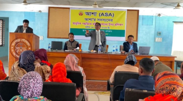 বড়াইগ্রাম (নাটোর) প্রতিনিধি: নাটোরের বড়াইগ্রামে আধুনিক পদ্ধতিতে মহিষ পালনের উপর প্রশিক্ষন কর্মশালা অনুষ্ঠিত হয়েছে। রবিবার সকালে উপজেলার বনপাড়া পৌরসভা হলরুমে আশা এনজিওর আয়োজনে আশার সদস্যদের মাঝে আধুনিক পদ্ধতিতে মহিষ পালনের উপর প্রশিক্ষন কর্মশালা অনুষ্ঠিত হয়। প্রশিক্ষণ কর্মশালায় “দুধের মাধ্যমে পুষ্টির চাহিদা পূরণে” আধুনিক পদ্ধতিতে মহিষ পালনের তাৎপর্য সম্পর্কে আশার প্রায় ৩০জন সদস্যদের এই প্রশিক্ষণ দেওয়া হয়। আশার জেলা সিনিয়র ডিস্ট্রিক্ট ম্যানেজার সেলিম রেজার সভাপতিত্বে এসময় উপস্থিত ছিলেন, উপজেলা প্রাণীসম্পদ কর্মকর্তা নূরে আলম সিদ্দিকী, আশার এসিস্ট্যান্ট ডিরেক্টর খোরশেদ আলম, সিনিয়র রিজিওনাল ম্যানেজার গোলাব হোসেন, সিনিয়র ব্রাঞ্চ ম্যানেজার মন্জুর রহমান সহ আশার সদস্যবৃন্দ।