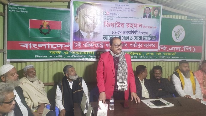স্টাফ রিপোর্টার :: গাজীপুরের টঙ্গীতে শহিদ প্রেসিডেন্ট জিয়াউর রহমানের ৮৯তম জন্মবার্ষিকী উপলক্ষে আলোচনা সভা ও দোয়া মাহফিল অনুষ্ঠিত হয়েছে। রোববার বাদ মাগরিব টঙ্গী পশ্চিম মেট্রো থানা বিএনপি বড় দেওড়া শিপন মার্কেটে এ অনুষ্ঠানের আয়োজন করে।