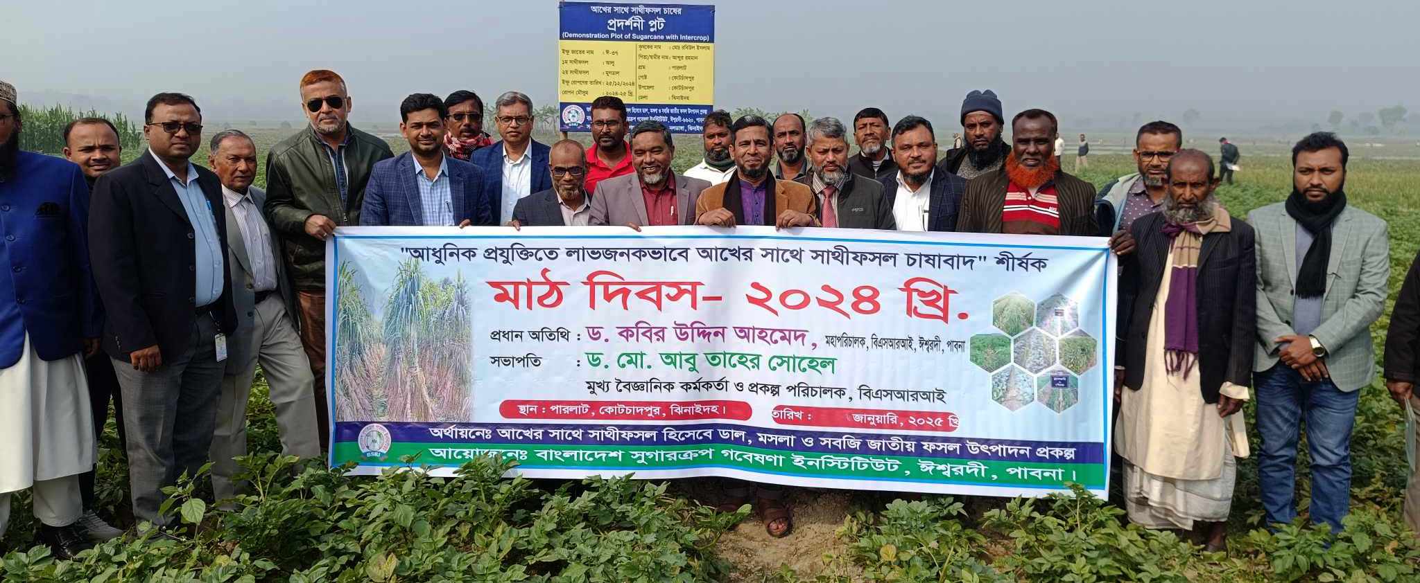 ঝিনাইদহ বিশেষ প্রতিনিধি- মোঃ ফজলুল কবির গামা দীর্ঘমেয়াদী ফসল আখ চাষকে লাভবান করতে ও চিনির উৎপাদন বৃদ্ধির লক্ষে ঝিনাইদহে আধুনিক প্রযুক্তিতে আখের সাথে সাথীফসল চাষাবাদ শীর্ষক মাঠ দিবস অনুষ্ঠিত। কোটচাঁদপুর উপজেলার পারলাট গ্রামে সকালে কৃষি মন্ত্রনালয়ের বাংলাদেশ সুগারক্রপ গবেষণা ইনস্টিটিউট (বিএসআরআই) ‘আখের সাথে সাথী ফসল হিসেবে ডাল, মসলা ও সবজি জাতীয় ফসল উৎপাদন প্রকল্প’র সহযোগীতায় এ মাঠ দিবসের আয়োজন করে। প্রকল্পের পরিচালক ও বিএসআরআই’র মুখ্য বৈজ্ঞানিক কর্মকর্তা ড. মো. আবু তাহের সোহেলের সভাপতিত্বে অনুষ্ঠানে প্রধান অতিথি ছিলেন বিএসআরআই’র কীটতত্ব বিভাগের প্রধান ও মুখ্য বৈজ্ঞানিক কর্মকর্তা ড মো. আতাউর রহমান। বিশেষ অতিথি ছিলেন, মোবারকগঞ্জ সুগার মিলের ব্যবস্থাপনা পরিচালক মুহাম্মদ সাইফুল ইসলাম, বিএসআরআই’র কৃষিতত্ব ও ফার্মিং সিস্টেম বিভাগের প্রধান ড. এ কে এম রাশেদুল ইসলাম, পরিকল্পনা ও উন্নয়ন বিভাগের প্রধান মুনির হোসেন, মোবারকগঞ্জ সুগার মিলের মহাব্যবস্থাপক (কৃষি) গৌতম কুমার মন্ডল। সেসময় বক্তারা বলেন, কৃষি জমির সর্বোচ্চ ব্যবহার নিশ্চিতে বছর মেয়াদী ফসল আখকে আরও লাভভান করতে তাদের এই প্রকল্প হাতে নেওয়া হয়েছে। মাঠ দিবস থেকে আখের সাথে সাথী ফসল হিসেবে ডাল, মসলা ও সবজি জাতীয় ফসলের উৎপাদন কৌশল, সুবিধা নিয়ে কৃষকদের নানা পরামর্শ দেন। মাঠ দিবসে ওই এলাকার শতাধিক কৃষাণ-কৃষাণী উপস্থিত ছিলেন।