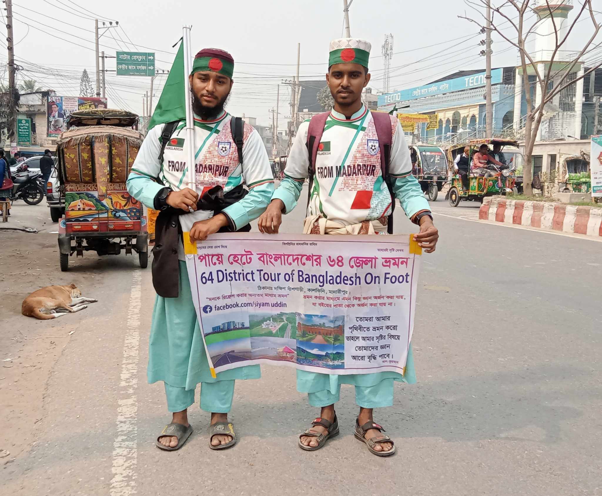 পায়ে হেঁটে দেশ ভ্রমণে আসা কোরআনের হাফেজ দুই ভাই জানান, গত ২৬ জানুয়ারি রোববার নিজ জেলা মাদারিপুর থেকে পায়ে হেঁটে ৬৪ জেলা ভ্রমণের উদ্দেশে যাত্রা শুরু করেন। এরপর দীর্ঘ ২২ দিন পায়ে হেঁটে ২৩তম জেলা নাটোরে আসেন হাফেজ দুই ভাই। এরপর তারা নাটোর হয়ে রাজশাহী জেলায় যাবেন।রাজশাহী থেকে চাঁপাইনবাবগঞ্জ।