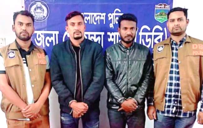 আল আমিন, নাটোর প্রতিনিধি :- নাটোরে ১৭৫ পিস ইয়াবাসহ পুলিশের বরখাস্তকৃত এক কনস্টেবল ও তার সহযোগীকে গ্রেফতার করেছে পুলিশ। গতকাল বুধবার রাতে নাটোর সদর উপজেলার জংলি এলাকা থেকে তাদের গ্রেফতার করা হয়। আজ আদালতের মাধ্যমে দুই জনকে কারাগারে পাঠানো হয়েছে। গ্রেফতাররা হলেন, বাগাতিপাড়া উপজেলার বেগুনিয়া গ্রামের পুলিশের বরখাস্তকৃত কনস্টেবল উজ্জ্বল হোসেন ও মকবুল হোসেনের ছেলে মো. মাসুদ রানা। পুলিশ জানায়, বুধবার রাত ৯ টার দিকে নাটোর সদর উপজেলার জংলি এলাকায় গোপন সংবাদের ভিত্তিতে অভিযান পরিচালনা করে ডিবি পুলিশ। এসময় পুলিশকে দেখেই তারা পালিয়ে যাবার চেষ্টা করলে তাদের আটক করা হয়। এসময় উজ্জল হোসেনের কাছ থেকে ১৭৫ পিস ইয়াবা উদ্ধার করা হয়। পরে তাদের বিরুদ্ধে মাদকদ্রব্য নিয়ন্ত্রণ আইনে মামলা দায়ের করে নাটোর সদর থানায় হস্তান্তর করা হয়। নাটোর সদর থানার ভারপ্রাপ্ত কর্মকর্তা মাহাবুর রহমান বলেন, বরখাস্তকৃত এক পুলিশ সদস্যসহ তার সহযোগীকে ১৭৫ পিস ইয়াবাসহ গ্রেফতার করে ডিবি পুলিশ। আজ বৃহস্পতিবার দুপুরে তাদের আদালতের মাধ্যমে কারাগারে পাঠানো হয়।