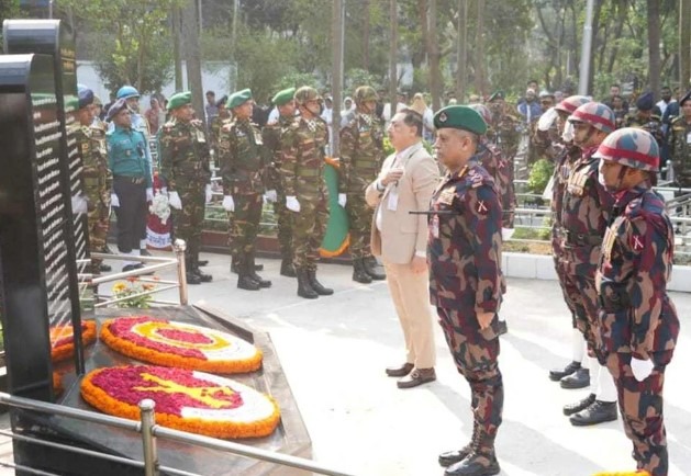 নিজস্ব প্রতিবেদক:: জাতীয় শহীদ সেনা দিবসে বিজিবি মহাপরিচালক মেজর জেনারেল মোহাম্মদ আশরাফুজ্জামান সিদ্দিকী বনানী সামরিক কবরস্থানে পিলখানা হত্যাকাণ্ডের বীর শহীদদের প্রতি শ্রদ্ধা জানিয়ে পুষ্পস্তবক অর্পণ করেছেন। বিজিবি মহাপরিচালক আজ মঙ্গলবার (২৫ ফেব্রুয়ারি) সকালে বনানী সামরিক কবরস্থানে ২০০৯ সালের ২৫ ও ২৬ ফেব্রুয়ারি বিজিবি (তৎকালীন বিডিআর) সদর দপ্তর, পিলখানায় সংঘটিত হত্যাকাণ্ডের বীর শহীদদের প্রতি শ্রদ্ধা জানিয়ে পুষ্পস্তবক অর্পণ করেছেন। এসময় বিজিবি সদর দপ্তরের ঊর্ধ্বতন কর্মকর্তাবৃন্দ উপস্থিত ছিলেন।