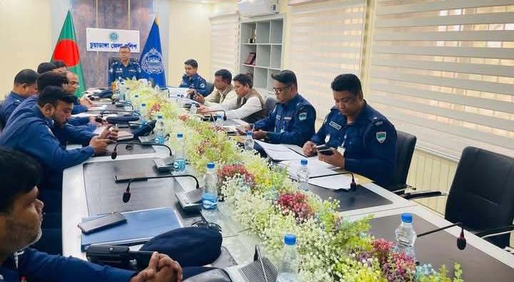 মাহমুদ হাসান রনি, চুয়াডাঙ্গা প্রতিনিধিঃ চুয়াডাঙ্গা জেলা পুলিশের আয়োজনে জেলা পুলিশের মাসিক অপরাধ পর্যালোচনা সভা অনুষ্ঠিত হয়েছে।