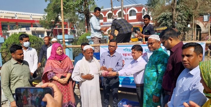 নিজস্ব প্রতিবেদক, ময়মনসিংহ :: পবিত্র রমজানে স্বল্পআয়ের মানুষের জন্য ময়মনসিংহে সুলভ মূল্যে ডিম ও গরুর মাংস বিক্রি শুরু হয়েছে। জেলা প্রশাসন ও জেলা প্রাণিসম্পদ বিভাগের উদ্যোগে মঙ্গলবার (৪ মার্চ) সকাল সাড়ে ৯ টায় জেলা প্রশাসকের কার্যালয়ের সামনে এ কার্যক্রমের আনুষ্ঠানিক উদ্বোধন করেন জেলা প্রশাসক মুফিদুল আলম। সুলভ মূল্যে গরুর মাংস প্রতি কেজি ৬৫০ টাকা ও প্রতি ডজন ডিম ১১০ টাকায় বিক্রি হচ্ছে। সপ্তাহে মঙ্গলবার ও বুধবার প্রতিদিন ১ হাজার কেজি মাংস ও ১০ হাজার পিস ডিম বিক্রি করা হবে। একজন ক্রেতা এক কেজি মাংস ও এক ডজন ডিম ক্রয় করতে পারবেন। পুরো রমজান মাস ধরে এ কার্যক্রম চলবে। রমজান মাসে স্বল্প আয়ের মানুষ বাজারের থেকে কম দামে যেন আমিষ পণ্য মাংস ও ডিম খেতে পারে সেজন্য এই উদ্যোগ।