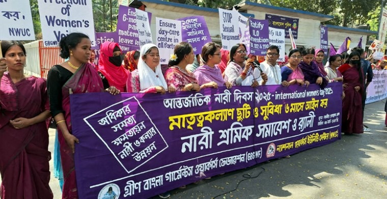 নিজস্ব প্রতিবেদক :: নারী শ্রমিকের মাতৃত্বকালীন ছুটি ও সুবিধার্থে ৬ মাসের আইন করার দাবি জানিয়েছে গ্রীণ বাংলা গার্মেন্টস ওয়ার্কার্স ফেডারেশন এবং ন্যাশনাল ওয়ার্কার্স ইউনিটি সেন্টার। আজ শুক্রবার (৭ মার্চ) জাতীয় প্রেস ক্লাবের সামনে আন্তর্জাতিক নারী দিবস উপলক্ষে আয়োজিত এক নারী শ্রমিক সমাবেশ ও র্যালি থেকে এ দাবি জানানো হয়েছে।