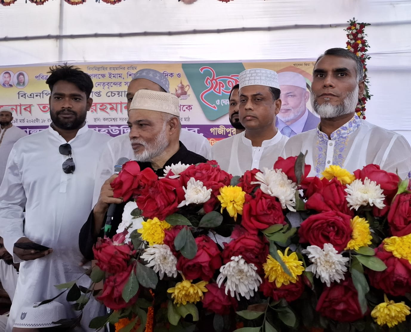 স্টাফ রিপোর্টার :: গাজীপুরের গাছা থানার বিভিন্ন মসজিদের ইমাম, খতিব, শিক্ষক, সাংবাদিক ও রাজনৈতিক ব্যক্তিদের সম্মানে বিএনপি’র ভারপ্রাপ্ত চেয়ারম্যান তারেক রহমানের পক্ষ থেকে গাছা থানা বিএনপি ও অঙ্গসহযোগী সংগঠনের উদ্যোগে ইফতার ও দোয়া মাহফিলের আয়োজন করা হয়েছে। বুধবার বিকেলে কলমেশ্বর সরকারি প্রাথমিক বিদ্যালয় সংলগ্ন বালুর মাঠে এ আয়োজন করা হয়।