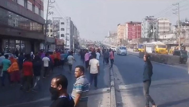স্থানীয় সূত্র জানায়, বন্ধের নোটিশ দেখে আজ সকাল ৮টার দিকে শ্রমিকেরা প্রথমে চৌরাস্তা-জয়দেবপুর রোড অবরোধ করেন। পরে তাঁরা মিছিল নিয়ে ভোগরা বাইপাসের দিকে অগ্রসর হন। এ সময় শ্রমিকেরা অন্যান্য কারখানার শ্রমিকদেরও আন্দোলনে যোগ দিতে আহ্বান জানান। নিরাপত্তার কারণে চৌরাস্তা ও চৌধুরীবাড়ি এলাকার বেশ কিছু কারখানা আজকের জন্য ছুটি ঘোষণা করে। পরে শ্রমিকেরা চান্দনা চৌরাস্তা এলাকায় বর্ষা সিনেমা হলের সামনে ঢাকা-ময়মনসিংহ মহাসড়ক অবরোধ করেন। সেনাবাহিনী, মহানগর পুলিশ ও শিল্প পুলিশ এসে শ্রমিকদের মহাসড়ক থেকে সরিয়ে দিলে প্রায় এক ঘণ্টা পর যান চলাচল শুরু হয়।