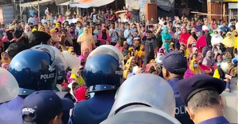 টঙ্গীতে বেতন ও ঈদ বোনাসের দাবিতে পোশাক শ্রমিকদের মহাসড়ক অবরোধ