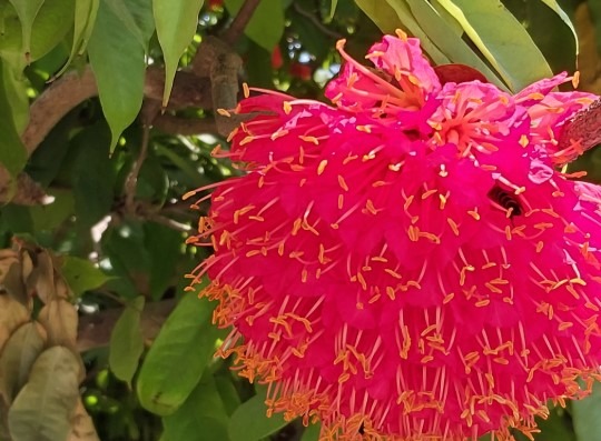 পারিজাত এদেশে দুষ্প্রাপ্য ফুল। উত্তরা গণভবনের প্রবেশ পথ ধরে হ্রদ পেরিয়ে গেলেই শতবর্ষী দু’টো পারিজাত ফুলের গাছ। প্রায় সাত মিটার করে উচ্চতায় অনেকখানি এলাকা জুড়ে ছাতার মত ছড়িয়ে আছে চির সবুজ এ গাছ। ঘন পাতার আচ্ছাদনে গাছের নীচে সূর্যের আলো আর তাপ পৌঁছনোর উপায় নেই। কান্ড আর ডালপালা অশোকের মত। সবুজ পাতা তৈরী হওয়াটা অনেক মনোরম আর বৈচিত্রের। কলার মোচার মত হরিণ রঙের কচি পল্লব অনেক আকর্ষণীয়। পথ পরিক্রমায় পল্লবের এক একটি মোচা রকমারী রঙ ছড়িয়ে শত শত পাতায় পরিণত হয়। আর ফুল? রক্ত রাঙা এক একটা ফুলের মধ্যে প্রায় শতটি ছোট ছোট ফুলের সমাহার। ফুলে গন্ধ নেই। তবে আছে পরাগ রেণু আর অনেক মধু। পারিজাতের এক একটি ফুলে অসংখ্য মৌমাছির সমাবেশ। দু’টো গাছ জুড়ে হাজারো ফুলে মৌমাছির দল সারাদিন ব্যস্ত মধু আহরণে। ছায়া, ফুল আর মৌমাছি এ এলাকাকে স্বর্গীয় করে তুলেছে। তাই হয়তো পারিজাতকে বলা হয় স্বর্গীয় ফুল!