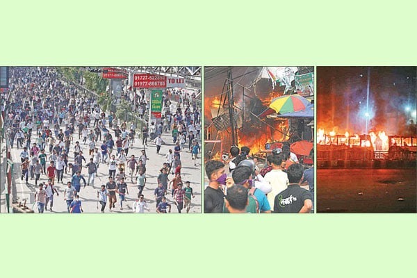 বগুড়ায় আওয়ামী লীগ অফিসে আগুন : রণক্ষেত্রে পরিণত হয়েছে বগুড়া শহরের প্রাণকেন্দ্র সাতমাথা। কোটা সংস্কার আন্দোলনকে কেন্দ্র করে গতকাল বেলা ৩টায় শিক্ষার্থীরা মিছিল নিয়ে সাতমাথায় এলে ছাত্রলীগের সঙ্গে দফায় দফায় ধাওয়া-পাল্টা ধাওয়ার ঘটনা ঘটে। এ সময় ব্যাপক ভাঙচুর, ইটপাটকেল নিক্ষেপ ও ককটেল বিস্ফোরণে সাতমাথা এলাকা রণক্ষেত্রে পরিণত হয়। এ ছাড়া আওয়ামী লীগ অফিস, বগুড়া টাউন ক্লাবে ভাঙচুর, পুলিশ বক্সে ও ৪টি মোটরসাইকেলে আগুন, জেলা আওয়ামী লীগের প্রচার ও প্রকাশনা সম্পাদক সুলতান মাহমুদ খান রনির ব্যবসা প্রতিষ্ঠান খান এন্টারপ্রাইজে ভাঙচুর ও অগ্নিসংযোগ করে। জানা যায়, মঙ্গলবার বেলা সাড়ে ৩টার দিকে শিক্ষার্থীরা বিক্ষোভ মিছিল নিয়ে সাতমাথায় সমবেত হলে এ ঘটনার সূত্রপাত।