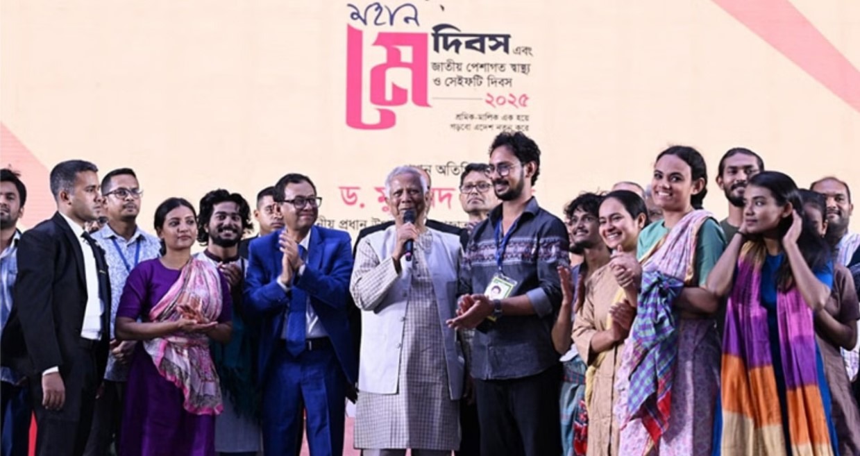 তিনি নতুন বাংলাদেশ গড়ে তুলতে শ্রমিকের অধিকার ও নিরাপদ কর্মপরিবেশ সৃষ্টি এবং শ্রমিক মালিক সু-সম্পর্কে স্থাপনে একযোগে কাজ করার আহ্বান জানান। প্রধান উপদেষ্টা বলেন, শ্রমিক-মালিকের পারস্পরিক ঐক্য ও সহযোগিতার মাধ্যমে বৈষম্যহীন নতুন বাংলাদেশ গড়ে তোলা সম্ভব। মহান মে দিবস এবং জাতীয় পেশাগত স্বাস্থ্য ও সেফটি দিবস-২০২৫ উপলক্ষে আজ বৃহস্পতিবার রাজধানীর বাংলাদেশ চীন মৈত্রী সম্মেলন কেন্দ্রে আয়োজিত অনুষ্ঠানে প্রধান অতিথির বক্তব্যে অধ্যাপক ইউনূস এ কথা বলেন। ‘শ্রমিক মালিক এক হয়ে গড়বো এ দেশ নতুন করে’ এই স্লোগানকে সামনে রেখে এবারের মে দিবস উদযাপন হচ্ছে।