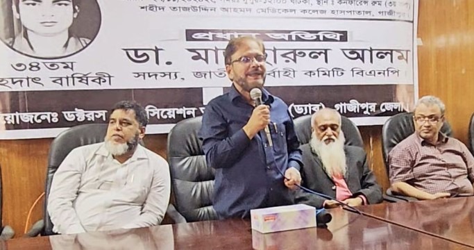 স্টাফ রিপোর্টার, গাজীপুর :: নব্বইয়ের স্বৈরাচার পতনের অগ্রদূত শহিদ ডা. শামসুল আলম খান মিলনের ৩৪তম মৃত্যুবার্ষিকী উপলক্ষে ডক্টরস অ্যাসোসিয়েশন অব বাংলাদেশের (ড্যাব) গাজীপুর জেলা শাখার আলোচনা সভা অনুষ্ঠিত হয়েছে।