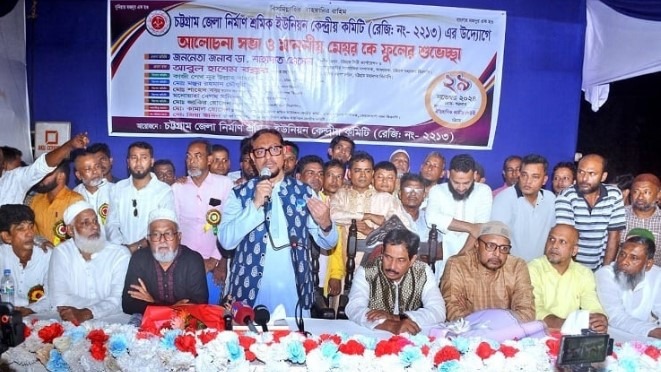 চট্টগ্রাম জেলা নির্মাণ শ্রমিক ইউনিয়ন কেন্দ্রীয় কমিটির উপদেষ্টা কামাল হোসেনের সভাপতিত্বে ও সাধারণ সম্পাদক জিয়া উদ্দিনের পরিচালনায় আলোচনা সভায় প্রধান বক্তা ছিলেন চট্টগ্রাম মহানগর বিএনপির সাবেক সাধারন সম্পাদক আবুল হাশেম বক্কর।