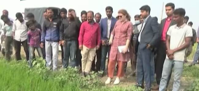 পরিদর্শন শেষে মার্কিন প্রতিনিধি দলের প্রধান মিস সারাহ জেলেস্কি ও মার্কিন দূতাবাস কর্মকর্তা তানভীর আহমেদ হালতিবিলের কৃষকদের সাথে মতবিনিময় করেন।