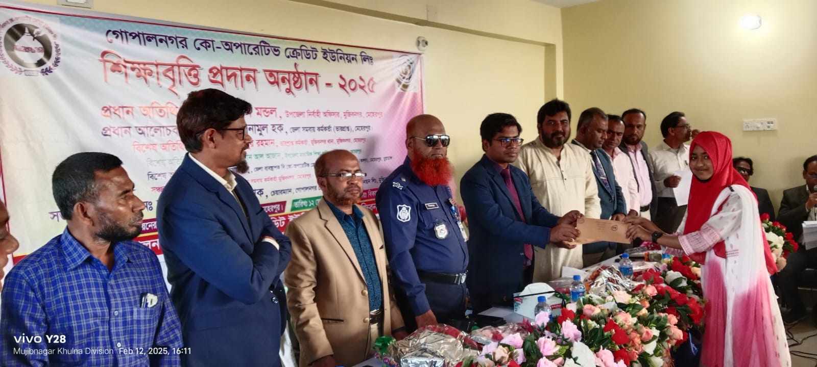 মুজিবনগর প্রতিনিধি:: মেহেরপুরের মুজিবনগরে শিক্ষার মান উন্নয়নে শিক্ষা ক্ষেত্রে অগ্রণী ভূমিকা পালন করছে গোপালনগর কো-অপারেটিভ ক্রেডিট ইউনিয়ন লি:। প্রতিবছর ক্রেডিট ইউনিয়নের সদস্যদের বিদ্যালয়ে অধ্যয়নরত মেধাবী সন্তানদের  শিক্ষাবৃত্তি প্রদান করে আসছে সংস্থাটি। তারই ধারাবাহিকতায় প্রতি বছরের ন্যায় গোপালনগর কো-অপারেটিভ ক্রেডিট ইউনিয়ন লি:-২০২৫ সালে শিক্ষাবৃত্তি প্রদান অনুষ্ঠান অনুষ্ঠিত হয়েছে।