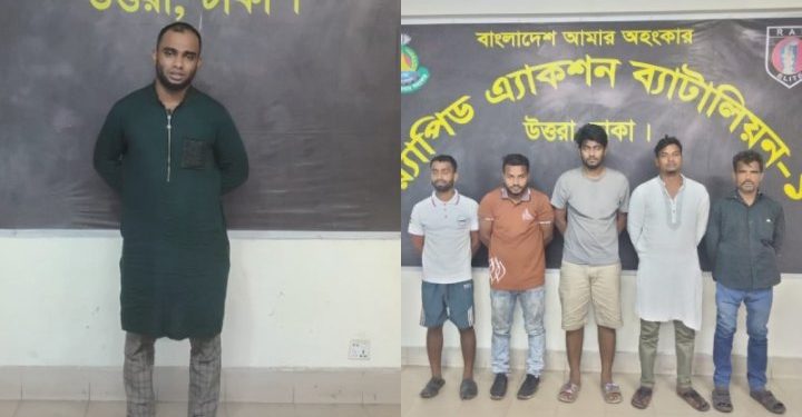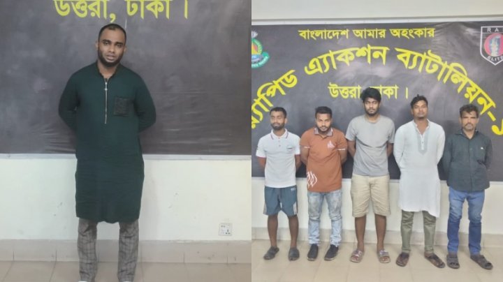গ্রেফতারকৃতরা হচ্ছে-শাহরিয়ার হোসেন সৈকত (৩২), শাহানুর আহমেদ অমিত (১৮), হিরা (৩২), বায়জিদ (২৭), জাহিদ (১৯) ও নূর ইসলাম (২৭)। সৈকত তাঁতী লীগের গাজীপুর মহানগরের যুগ্ম সাধারণ সম্পাদক। এ সময় তাদের কাছ থেকে একটি রিভলভার, শটগানের চার রাউন্ড বুলেট, হিরোইন, মোবাইল ফোন ও নগদ টাকা উদ্ধার করা হয়। এর মধ্যে শীর্ষ সন্ত্রাসী শাহরিয়ার হোসেন সৈকত গত ৫ আগস্ট বৈষম্যবিরোধী ছাত্র আন্দোলনে গাজীপুর এলাকায় ছাত্রদের ওপর হামলার নেতৃত্ব দিয়েছেন বলে র্যাব জানায়।
