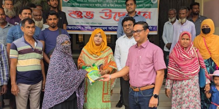 ধামইরহাটে প্রান্তিক কৃষকের মাঝে বিনামূল্যে ধানের বীজ ও সার বিতরণ