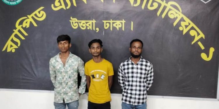 স্টাফ রিপোর্টার:: গাজীপুর মহানগরীর পূবাইল এলাকায় অভিযান চালিয়ে ১২৪ কেজি গাঁজাসহ ৩ মাদক ব্যবসায়ীকে গ্রেফতার করেছে র্যাব। গ্রেফতারকৃতরা হচ্ছে- মোঃ সোহাগ শেখ (৩৯), পিতা-মৃত মোঃ আঃ মজিদ, গ্রাম-সুমেরখোলা, থানা-কালিয়া, জেলা-নড়াইল, মোঃ আশিক বিশ্বাস ওরফে আকাশ (২১), পিতা-মোঃ মিজানুর বিশ্বাস, গ্রাম-নগগ্রাম, থানা-কালিয়া, জেলা-নড়াইল ও মোঃ সাগর মিয়া (২০), পিতা-মোঃ শফিক মিয়া, গ্রাম-ইটাখোলা মুরাপাড়া, থানা-মাধবপুর, জেলা-হবিগঞ্জগ। এসময় তাদের ব্যবহৃত একটি বালু ভর্তি ট্রাক তল্লাশী করে ১২৪ কেজি গাঁজা, ৩টি মোবাইল ফোন, ৪টি সিমর্কাড এবং নগদ ৩৮০০/- টাকা উদ্ধার করা হয়।