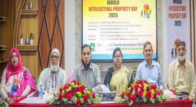 স্টাফ রিপোর্টার, গাজীপুর :: বিশ্ব মেধাস্বত্ব (ইন্টেলেকচুয়াল প্রপার্টি) দিবস ২০২৫ উদযাপন উপলক্ষে মানুষের সৃজনশীলতা ও উদ্ভাবনী অবদানকে সম্মান ও স্বীকৃতি জানাতে গাজীপুর কৃষি বিশ্ববিদ্যালয়ে (গাকৃবি) বিশ্ব মেধাস্বত্ব দিবসের ওপর সেমিনার অনুষ্ঠিত হয়েছে। সোমবার বিকাল ২টা ৩০ মিনিটে আইকিউএসি’র সেমিনার কক্ষে এই সেমিনার অনুষ্ঠিত হয়।