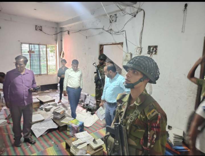 আল আমিন, নাটোর প্রতিনিধি :- নাটোরের সিংড়ায় বই ছাপানোর কারখানায় অভিযান চালিয়ে বিপুল পরিমাণ নকল বই জব্দ করেছে ভ্রাম্যামান আদালত। এ সময় সিলগালা করে দেওয়া হয় কারখানাটি। জাতীয় গোয়েন্দা সংস্থা এনএসআই’র তথ্যের ভিত্তিতে আজ বুধবার দুপুরে নাটোরের সিংড়া উপজেলার হাতিয়ান্দহ ইউনিয়নের নলবাতা এলাকায় ওই কারখানায় অভিযান চালায় যৌথবাহিনী। বিষয়টি নিশ্চিত করেন ভ্রাম্যমান আদালতের বিচারক সহকারি কমিশনার (ভূমি) ও নির্বাহী ম্যাজিষ্ট্রেট গোলাম রাব্বানী সরদার। জব্দকৃত জেনারেল ও মাদ্রাসা বোর্ডের বইগুলো সংরক্ষনের প্রক্রিয়া চলমান রয়েছে। সহকারি কমিশনার (ভূমি) ও নির্বাহী ম্যাজিষ্ট্রেট গোলাম রাব্বানী সরদার জানান, জাতীয় গোয়েন্দা সংস্থা (এনএসআই) এর তথ্যের ভিত্তিতে উপজেলার নলবাতা এলাকায় ক্ষণিকালয় নামের একটি বাড়িতে অভিযান চালায় যৌথবাহিনীর একটি দল। অভিযানে নকল বই তৈরীর কারখানার সন্ধান পাওয়া যায়। সেখানে বিপুল পরিমাণ নকল বই মজুদ করা ছিল। পরে নকল বইগুলো জব্দ ও কারখানাটি সিলগালা করে দেন ভ্রাম্যমান আদালতের বিচারক সহকারি কমিশনার (ভমি) ও নির্বাহী ম্যাজিষ্ট্রট গোলাম রাব্বানী সরদার। তবে অভিযানকালে প্রেস কারখানার মালিক আব্দুল হালিমকে সেখানে পাওয়া যায়নি। কারখানার বৈধ্য কাগজপত্র দেখাতে না পারলে কারখানা মালিকের বিরুদ্ধে আইনগত ব্যবস্থা নেওয়া হবে।