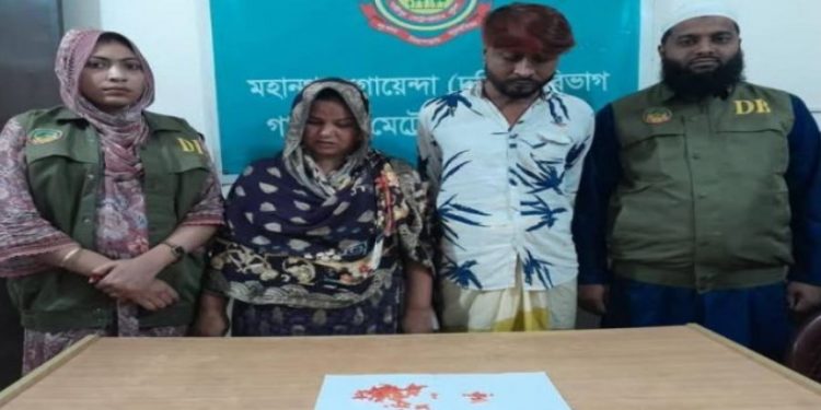 স্টাফ রিপোর্টার, গাজীপুর :: গাজীপুর মহানগরীর টঙ্গীর এরশাদনগর এলাকায় অভিযান চালিয়ে দুই মাদক ব্যবসায়ীকে গ্রেফতার করেছে পুলিশ। সোমবার দিবাগত রাতে মহানগরীর ৪৯নং ওয়ার্ড এলাকা থেকে তাদেরকে গ্রেফতার করা হয়। গ্রেফতারকৃতরা হচ্ছে-পারুলী বেগম ও তার স্বামী মানিক মিয়া। এ সময় তাদের কাছ থেকে দুইশত পিস ইয়াবা ট্যাবলেট উদ্ধার করা হয়।