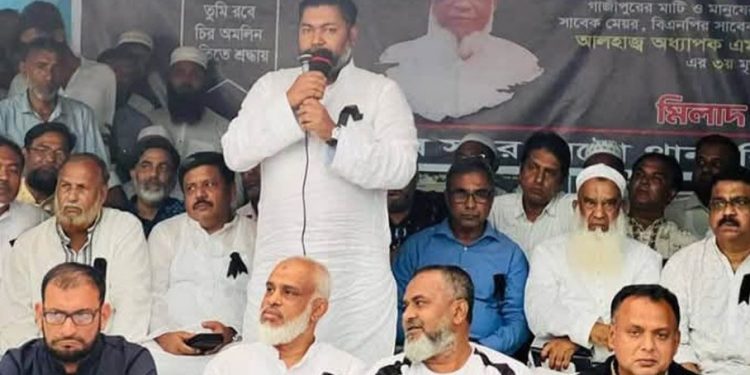 স্টাফ রিপোর্টার, গাজীপুর :: গাজীপুর সিটি করপোরেশনের প্রতিষ্ঠাকালীন মেয়র সাবেক প্রতিমন্ত্রী, বিএনপির সাবেক ভাইস চেয়ারম্যান অধ্যাপক এম এ মান্নানকে ফ্যাসিস্ট সরকার মিথ্যা মামলায় কারারুদ্ধ করে পরিকল্পিতভাবে হত্যা করেছে । সোমবার অধ্যাপক এম এ মান্নানের তৃতীয় মৃত্যু বার্ষিকীর বিভিন্ন অনুষ্ঠানে বিএনপি নেতারা বক্তৃতাকালে এ অভিযোগ করেন।